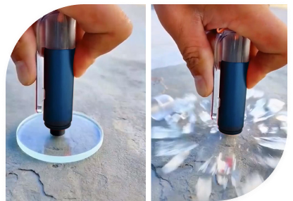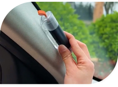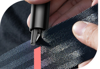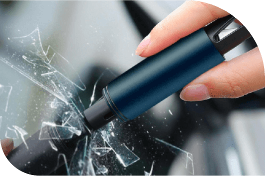 But using Auto Rescue Tool, you simply push the side window's corner with a tip made of the finest tungsten steel to shatter the glass and open the door.