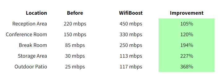 UltraXtend dramatically improved internet speeds across all areas of the office: